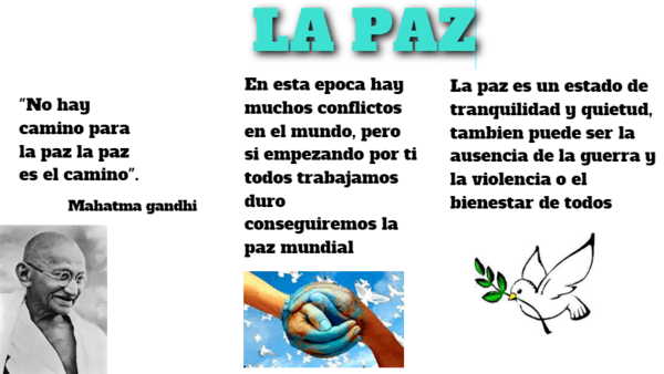 La paz es un estado de tranquilidad y quietud, tambien puede ser la ausencia de la guerra y la violencia o el bienestar de todos