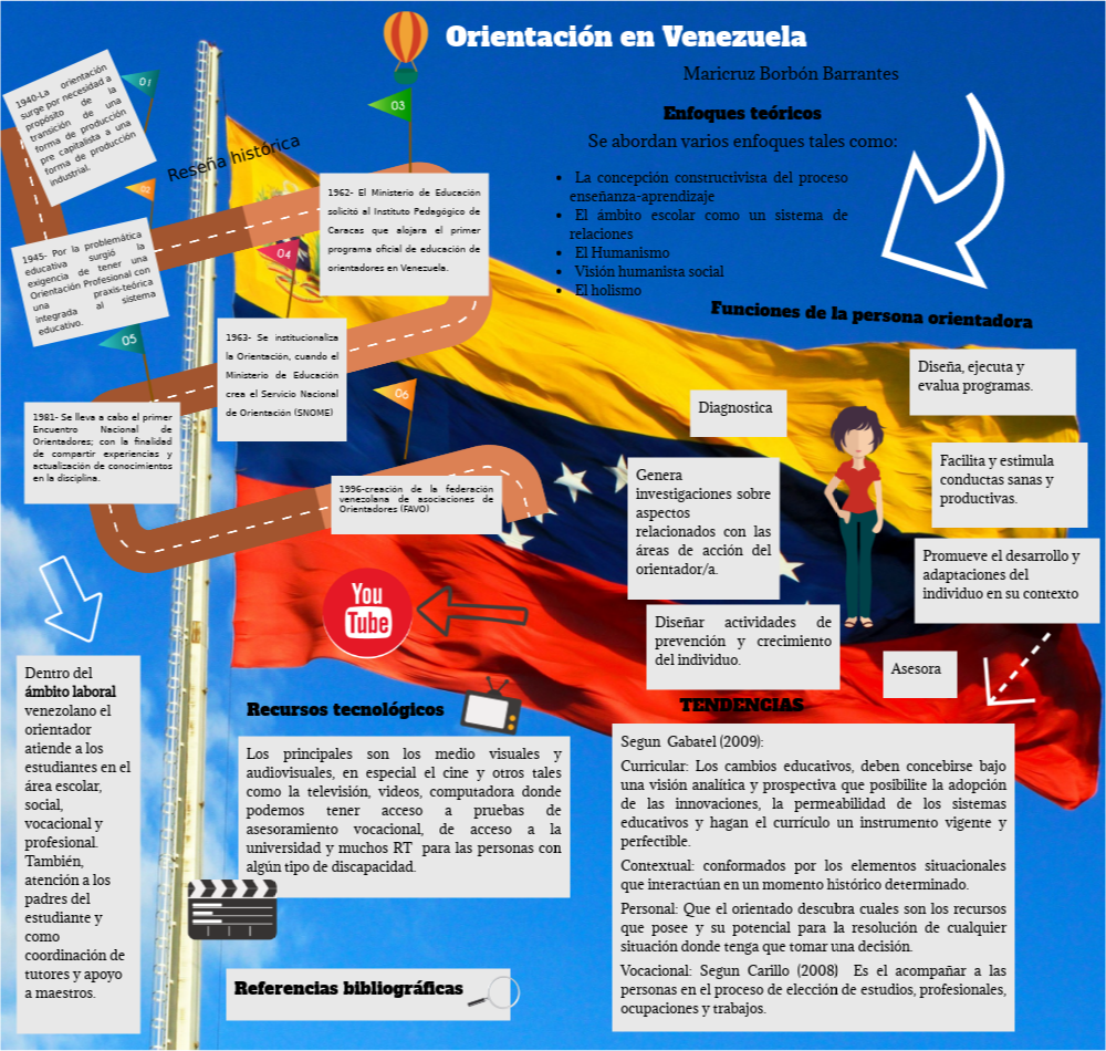 Dentro del ámbito laboral venezolano el orientador atiende a los estudiantes en el área escolar, social, vocacional y profesional. También, atención a los padres del estudiante y como coordinación de tutores y apoyo a maestros.