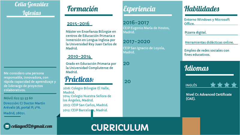 Grado en Educación Primaria por la Universidad Complutense de Madrid.