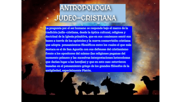 La pregunta por el ser humano se responde bajo el marco de la tradición judío-cristiana, desde la óptica cultural, religiosa y doctrinal de la Iglesia primitiva, que en sus comienzos sentó sus bases a través de los apóstoles y la nueva cosmovisión cristiana que adopta pensamientos filosóficos entre los cuales el que más destaca es el de San Agustín con sus defensas del cristianismo frente a los opositores del mismo (las religiones paganas del momento primero y las sucesivas interpretaciones heterodoxas que darían lugar a las herejías) y que en este caso estuvieron basadas en el pensamiento griego de los grandes filósofos de la antigüedad, especialmente Platón.