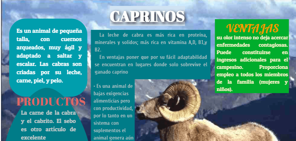 - En ventajas poner que por su fácil adaptabilidad se encuentran en lugares donde solo sobrevive el ganado caprino