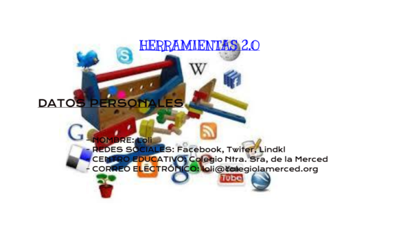 - NOMBRE: Loli- REDES SOCIALES: Facebook, Twiter, Lindkl - CENTRO EDUCATIVO: Colegio Ntra. Sra, de la Merced - CORREO ELECTRÓNICO: loli@colegiolamerced.org