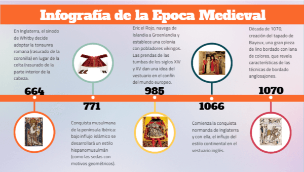Década de 1070, creación del tapado de Bayeux, una gran pieza de lino bordado con lana de colores, que revela características de las técnicas de bordado anglosajones.