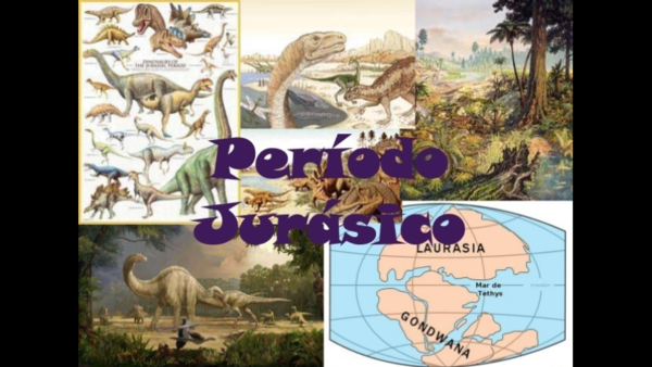 El período Jurásico hace 206 144 millones años, donde se evidenció el dominio total de los dinosaurios. Los peces óseos eran las criaturas superiores en el mar y los historiadores plantean que esta era vio la evolución de los primeros mamíferos. Las plantas dominantes fueron las gimnospermas, así como lo fue un grupo de dinosaurios llamados terópodos que desarrollaron plumas para defenderse del frío.Este período se caracteriza por la hegemonía de los grandes dinosaurios y por la escisión de Pangea en los continentes Laurasia y Gondwana. El Jurásico se divide en Inferior, Medio y Superior, también conocidos como Lias, Dogger y Malm.