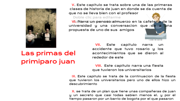 - VIII. Este capitulo narra una fiesta que tuvieron los universitarios