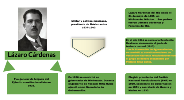 Presidente de México en 1934, puso en marcha la reforma agraria, la protección de los ejidos agrarios y la nacionalización del petróleo.