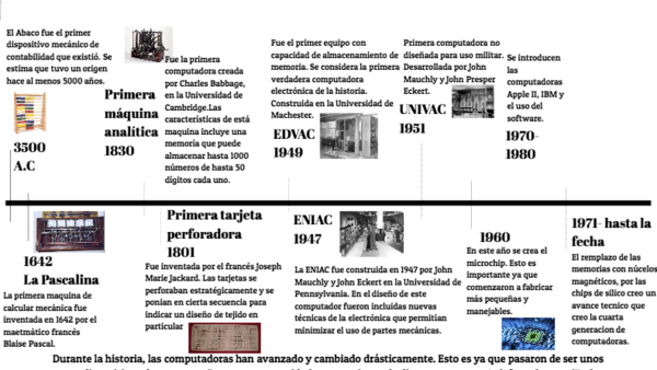 Durante la historia, las computadoras han avanzado y cambiado drásticamente. Esto es ya que pasaron de ser unos pocos dispositivos de gran tamaño y escasa capacidad, a un conjunto de diversos aparatos (telefono, laptop, iPad etc) de gran poder de computo que no requieren conocimientos especializados para utilizarlos.
