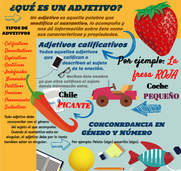 Un adjetivo es aquella palabra que modifica al sustantivo, lo acompaña y nos dá información sobre éste como sus caracteristicas y propiedades.