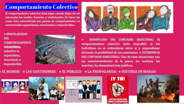 1. Contagio social, cuando la muchedumbre alcanza un alto grado de excitación y las relaciones personales se trasmiten de una persona a otra.