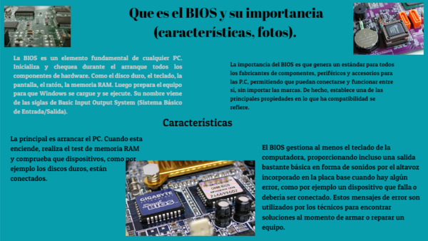 La BIOS es un elemento fundamental de cualquier PC. Inicializa y chequea durante el arranque todos los componentes de hardware. Como el disco duro, el teclado, la pantalla, el ratón, la memoria RAM. Luego prepara el equipo para que Windows se cargue y se ejecute. Su nombre viene de las siglas de Basic Input Output System (Sistema Básico de Entrada/Salida).