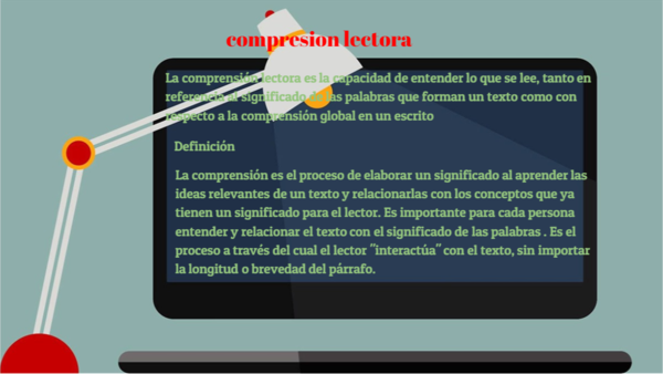 La comprensión lectora es la capacidad de entender lo que se lee, tanto en referencia al significado de las palabras que forman un texto como con respecto a la comprensión global en un escrito