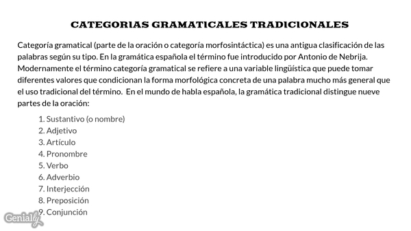 CATEGORIAS GRAMATICALES TRADICIONALES
