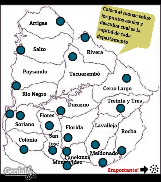 Coloca el mouse sobre los puntos azules y descubre cual es la capital de cada departamento