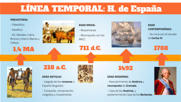 PREHISTORIA: - Paleolítico - Neolítico - Ed. Metales: Cobre, Bronce y Hierro (Iberos y Celtas).
