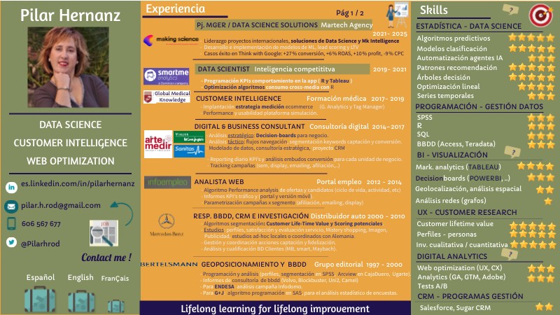 Perfil Pilar Hernanz, estadístico, analista de datos, marketing e inteligencia de clientes