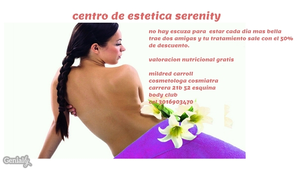 no hay escuza para estar cada dia mas bellatrae dos amigas y tu tratamiento sale con el 50% de descuento. valoracion nutricional gratis mildred carroll cosmetologa cosmiatra carrera 21b 52 esquina body club cel 3016903470