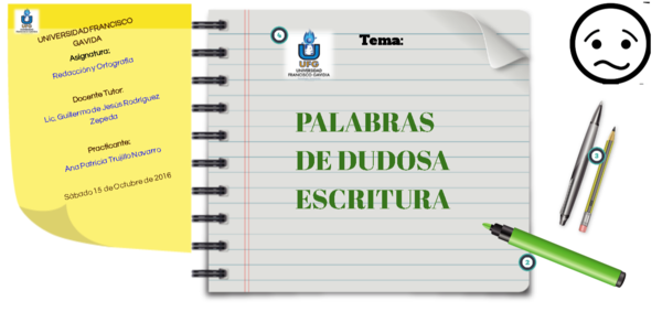 UNIVERSIDAD FRANCISCO GAVIDA Asignatura: Redacción y Ortografía Docente Tutor: Lic. Guillermo de Jesús Rodríguez Zepeda Practicante: Ana Patricia Trujillo Navarro Sábado 15 de Octubre de 2016