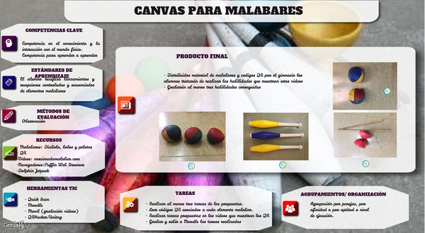 - Realizar al menos tres tareas de las propuestas.- Leer códigos QR asociados a cada elemento malabar.- Realizar tareas propuestas en los videos que muestran los QR - Grabar y subir a Moodle las tareas realizadas