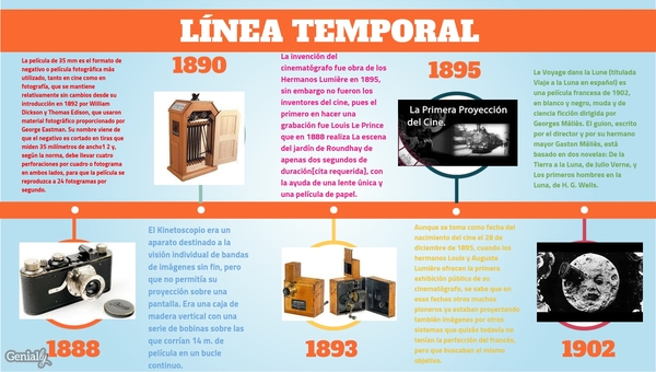 La invención del cinematógrafo fue obra de los Hermanos Lumière en 1895, sin embargo no fueron los inventores del cine, pues el primero en hacer una grabación fue Louis Le Prince que en 1888 realiza La escena del jardín de Roundhay de apenas dos segundos de duración[cita requerida], con la ayuda de una lente única y una película de papel.