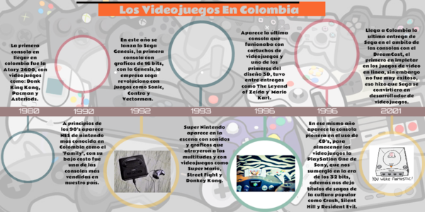 La primera consola en llegar en colombia fue la Atary 2600, con videojuegos como: Donk King Kong, Pacman y Asteriods.