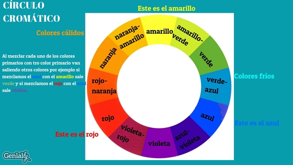 Al mezclar cada uno de los colores primarios con tro color primario van saliendo otros colores por ejemplo si mezclamos el azul con el amarillo sale verde y si mezclamos el rojo con el azulsale violeta.