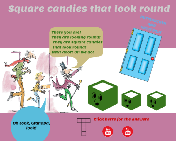There you are!They are looking round! They are square candies that look round! Next door! On we go!