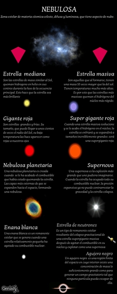 Una nebulosa planetaria es creada cuando se le ha acabado el combustible que había estado quemando la estrella. Las capas más externas de gas se expanden hacia el espacio, formando una nebulosa.