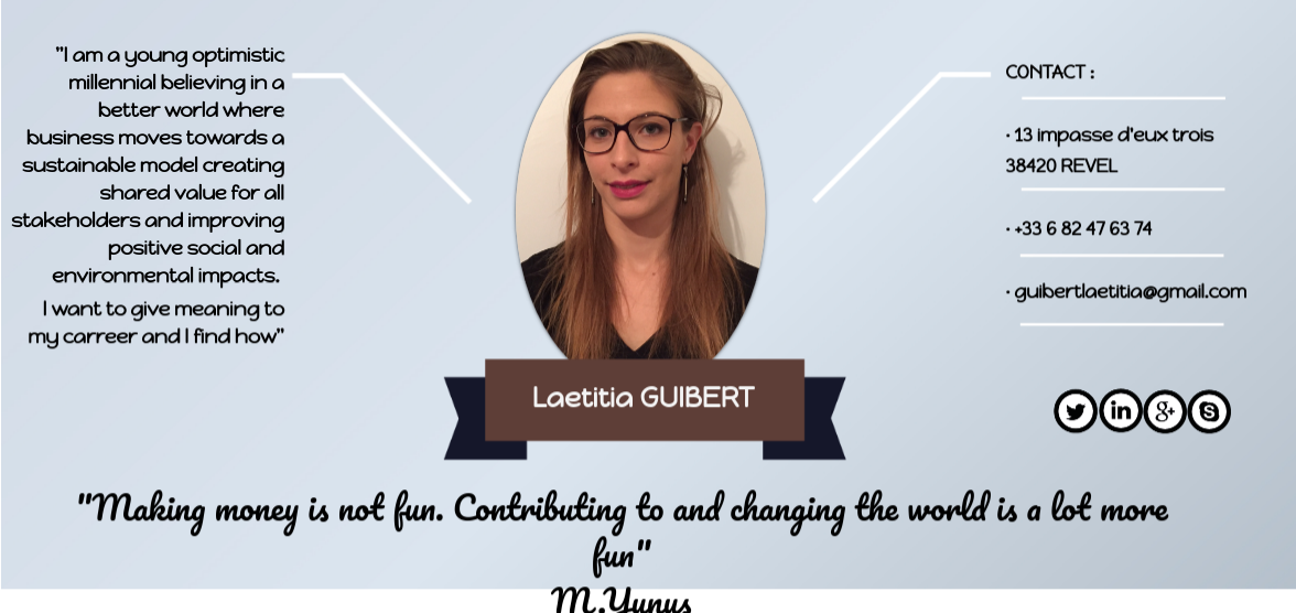 "I am a young optimistic millennial believing in a better world where business moves towards a sustainable model creating shared value for all stakeholders and improving positive social and environmental impacts. I want to give meaning to my carreer and I find how"