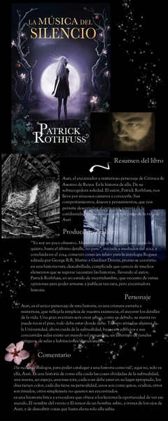 Auri, el encantador y misterioso personaje de Crónica de Asesino de Reyes. Es la historia de ella. De su sobrecogedora soledad. El autor, Patrick Rothfuss, nos lleva por sinuosos caminos a conocerla. Sus comportamientos, deseos y pensamientos, que nos permite desentreñar al personaje a través de la cotidianidad de sus días, esto es una parte de la vida de Auri