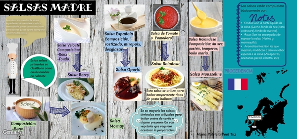 - Roux: Son los encargados de espesar la salsa. (Harina y mantequilla).