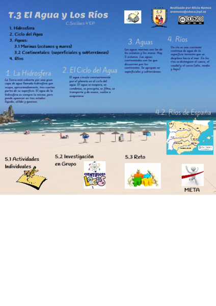 1. Hidrosfera 2. Ciclo del Agua 3. Aguas: 3.1 Marinas (océanos y mares) 3.2 Continentales: (superficiales y subterráneas)4. Ríos