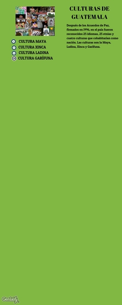 Después de los Acuerdos de Paz, firmados en 1996, en el país fueron reconocidos 25 idiomas, 25 etnias y cuatro culturas que cohabitarían como nación. Las culturas son la Maya, Ladina, Xinca y Garífuna.
