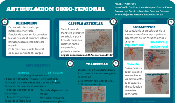 Es una articulacion de tipo esferoidea enartrosis. Funcion de soporte y locomocion la cual orienta el miembro inferior hacia todas las direcciones del espacio. En la marcha el cuello femoral es el que transmite las cargas.