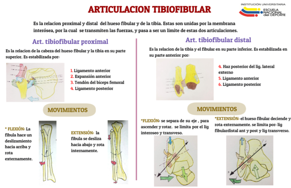 Es la relacion proximal y distal del hueso fibular y de la tibia. Estas son unidas por la membrana interósea, por la cual se transmiten las fuerzas, y pasa a ser un limite de estas dos articulaciones.