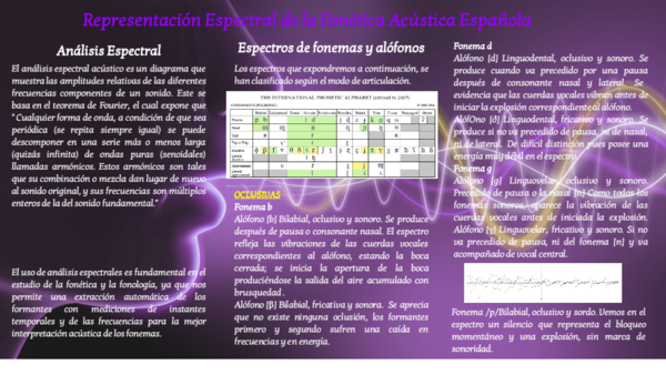 Los espectros que expondremos a continuación, se han clasificado según el modo de articulación.