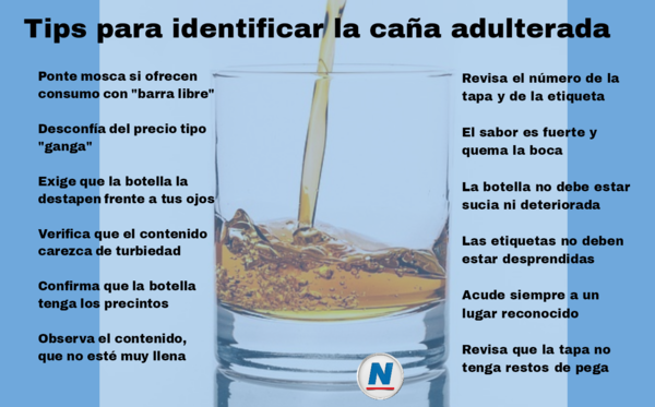 Ponte mosca si ofrecen consumo con "barra libre" Desconfía del precio tipo "ganga"Exige que la botella la destapen frente a tus ojosVerifica que el contenido carezca de turbiedadConfirma que la botellatenga los precintosObserva el contenido,que no esté muy llena