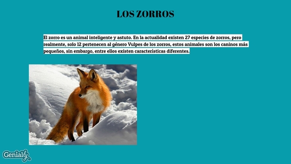 El zorro es un animal inteligente y astuto. En la actualidad existen 27 especies de zorros, pero realmente, solo 12 pertenecen al género Vulpes de los zorros, estos animales son los caninos más pequeños, sin embargo, entre ellos existen características diferentes.
