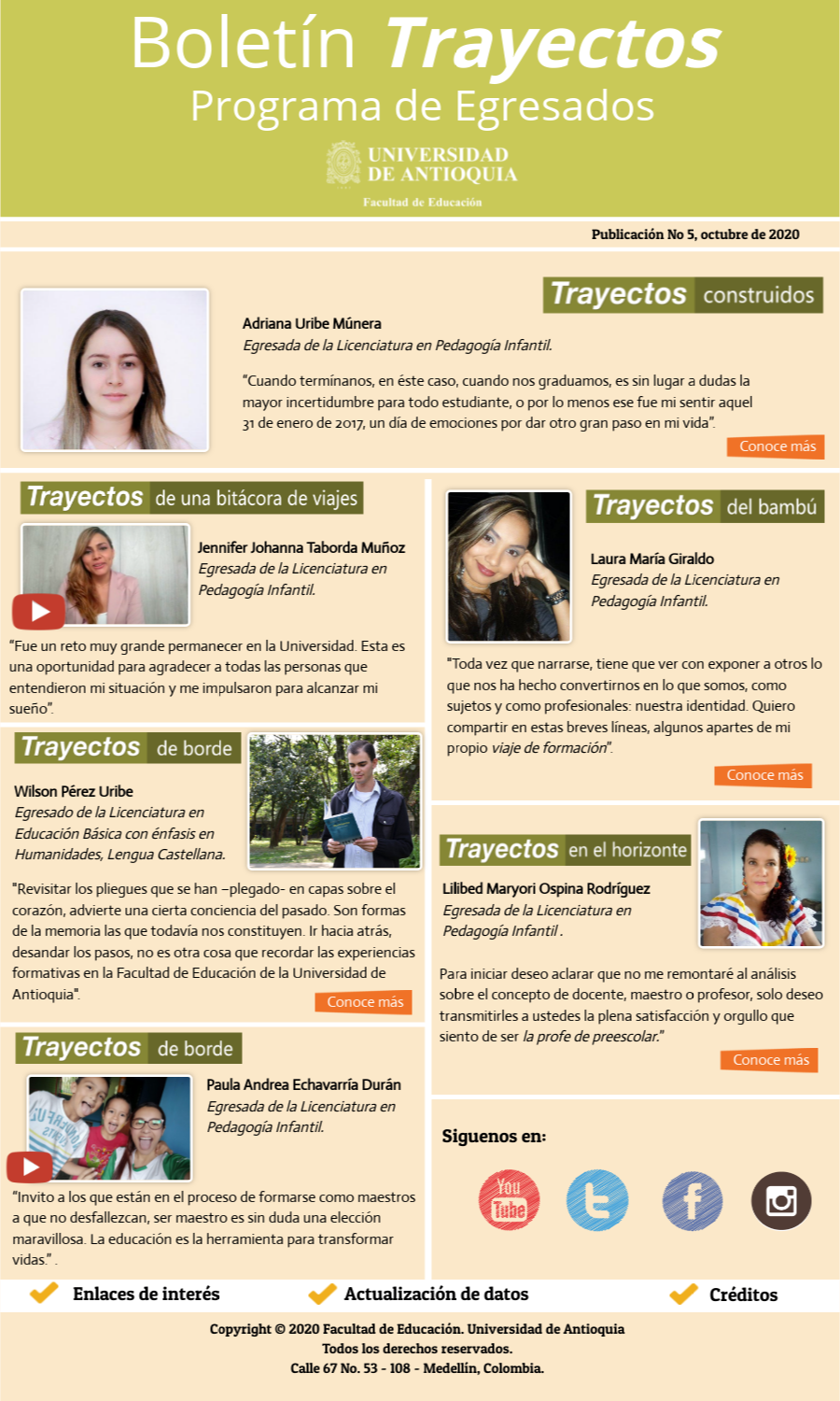 Boletín Trayectos. Programa de Egresados. Número 5. Septiembre de 2020