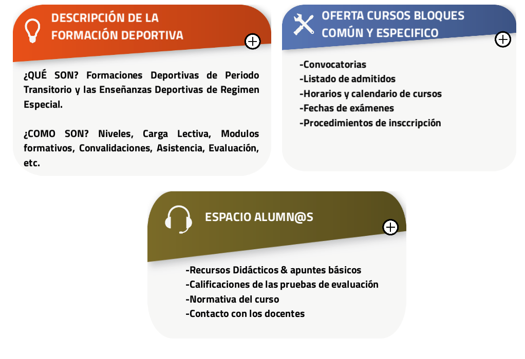 -Convocatorias -Listado de admitidos -Horarios y calendario de cursos -Fechas de exámenes -Procedimientos de insccripción