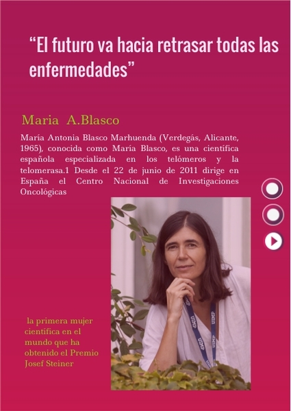 María Antonia Blasco Marhuenda (Verdegás, Alicante, 1965), conocida como María Blasco, es una científica española especializada en los telómeros y la telomerasa.1 Desde el 22 de junio de 2011 dirige en España el Centro Nacional de Investigaciones Oncológicas