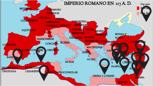 Provincias del Imperio romano en 117 d. C.