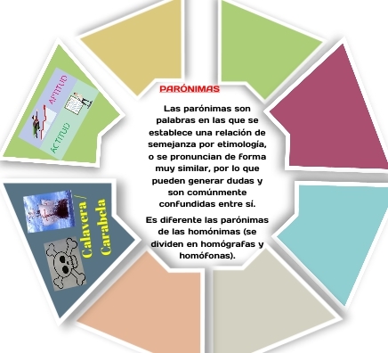 Las parónimas son palabras en las que se establece una relación de semejanza por etimología, o se pronuncian de forma muy similar, por lo que pueden generar dudas y son comúnmente confundidas entre sí. Es diferente las parónimas de las homónimas (se dividen en homógrafas y homófonas).