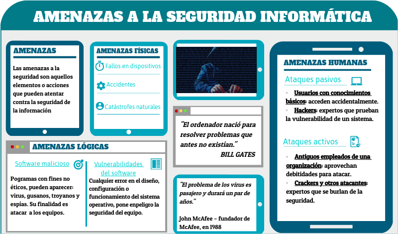 Las amenazas a la seguridad son aquellos elementos o acciones que pueden atentar contra la seguridad de la información