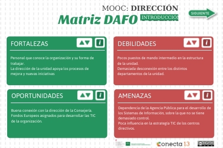 Buena conexión con la dirección de la Consejería. Fondos Europeos asignados para desarrollar las TIC de la organización.