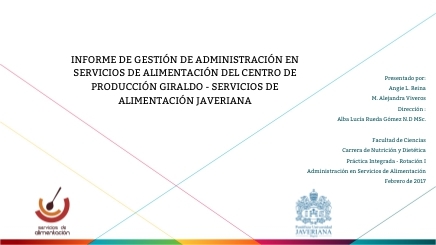 INFORME DE GESTIÓN DE ADMINISTRACIÓN EN SERVICIOS DE ALIMENTACIÓN DEL CENTRO DE PRODUCCIÓN GIRALDO - SERVICIOS DE ALIMENTACIÓN JAVERIANA