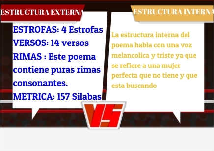 La estructura interna del poema habla con una voz melancolica y triste ya que se refiere a una mujer perfecta que no tiene y que esta buscando