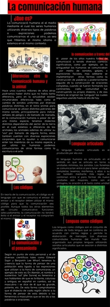 La comunicació humana el el medio mediante el cual los seres humanos utilizando diversos tipos de palabras o expreciones podemos comunicarnos el uno al otro, ya sea que hblemos el mismo idioma o estemos en el mismo contexto.
