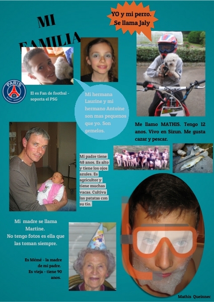 Me llamo MATHIS. Tengo 12 anos. Vivo en Sizun. Me gusta cazar y pescar.