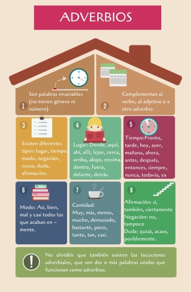 No olvidéis que también existen las locuciones adverbiales, que son dos o más palabras unidas que funcionan como adverbios.