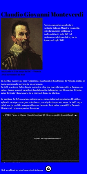 fue un compositor, gambista y cantante italiano. Marcó la transición entre la tradición polifónica y madrigalista del siglo XVI y el nacimiento del drama lírico y de la ópera en el siglo XVII.